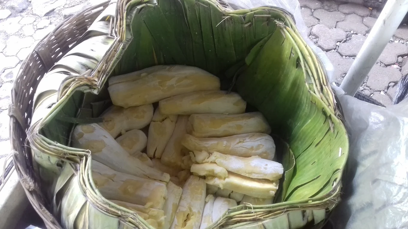 Peuyeum adalah makanan khas Sunda berbahan dasar singkong yang difermentasi. Teksturnya lembut dengan rasa manis dan sedikit asam, sering disajikan sebagai camilan atau pelengkap makanan lain.