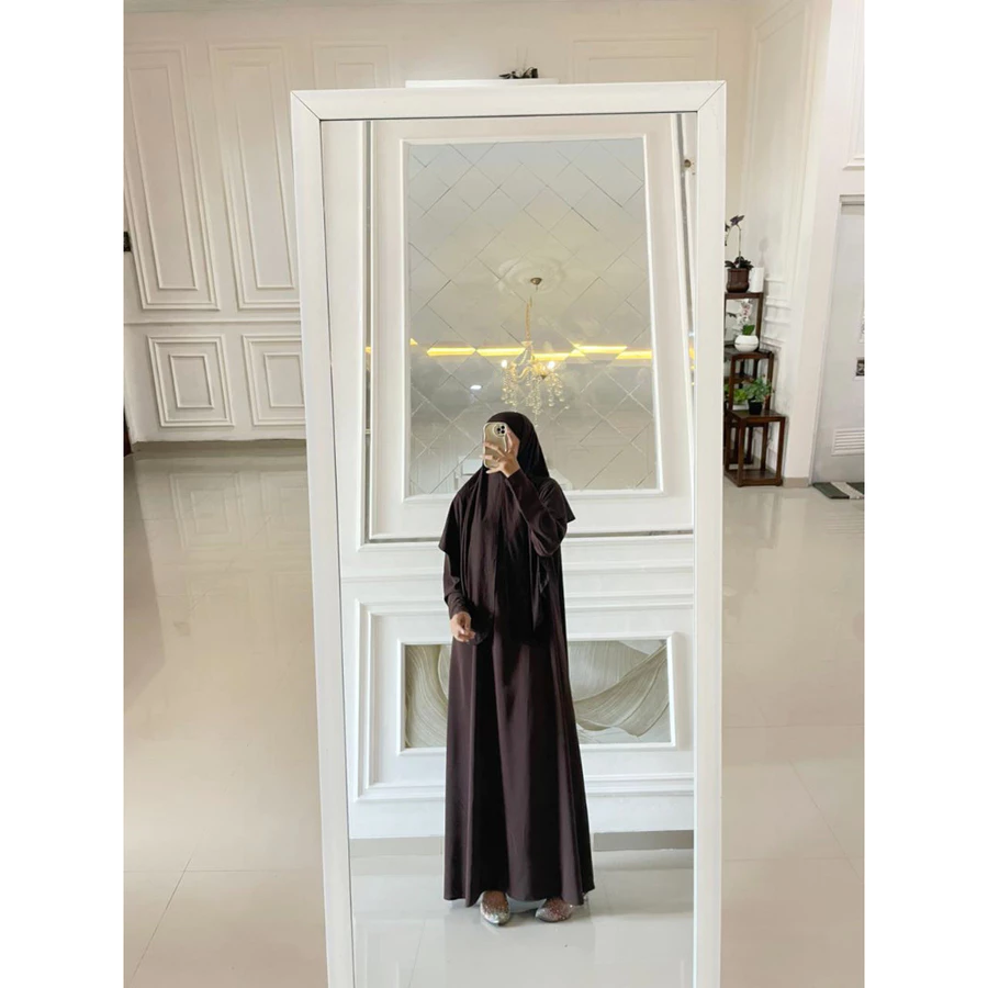 Desainnya dibuat praktis dan fungsional dengan fitur busui friendly yang memudahkan ibu menyusui, serta wudhu friendly untuk kemudahan beribadah. Dilengkapi juga dengan saku kanan yang praktis untuk menyimpan barang kecil. Sementara itu, potongan rok umbrella memberikan siluet flowy yang terlihat mewah dan elegan saat dikenakan.